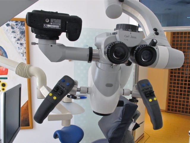 Das OP-Mikroskop ist ein unverzichtbares und viel genutztes Instrument in unserer Praxis. Besonders bei komplexen Wurzelkanalbehandlungen ermöglicht uns die starke Vergrößerung und optimale Ausleuchtung ein präzises Arbeiten, das mit dem bloßen Auge nicht möglich wäre.